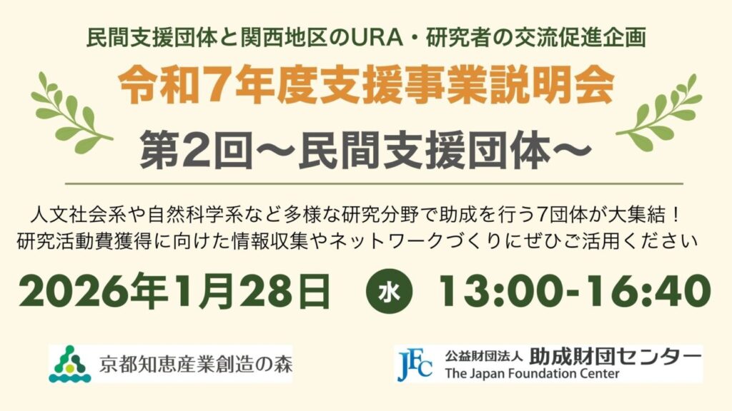 民間支援団体と関西地区のURA・研究者の交流促進企画  令和7年度支援事業説明会 第2回~民間団体~(2026年1月28日)