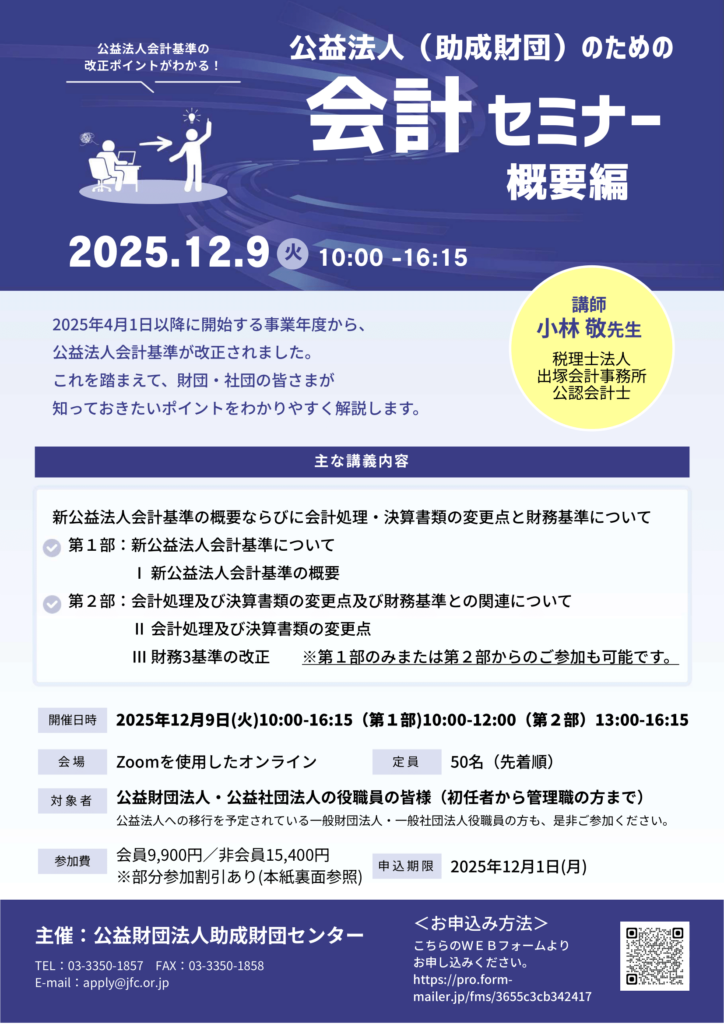 公益法人(助成財団)のための会計セミナー<概要編>【12月9日開催】
