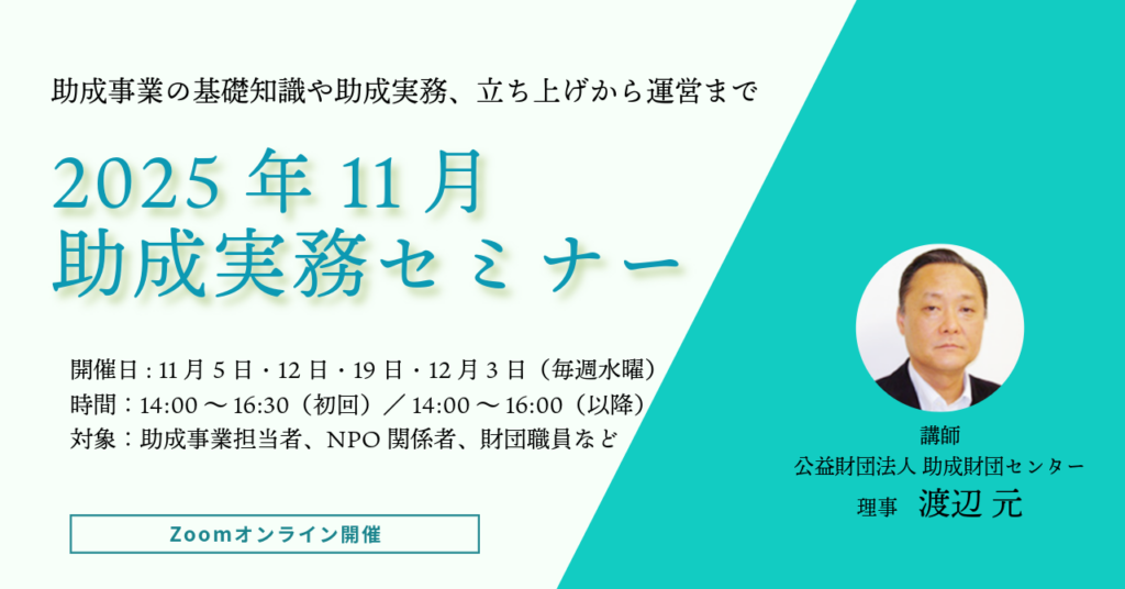 2025年11月助成実務セミナー(11月5日、12日、19日、12月3日)開催のご案内
