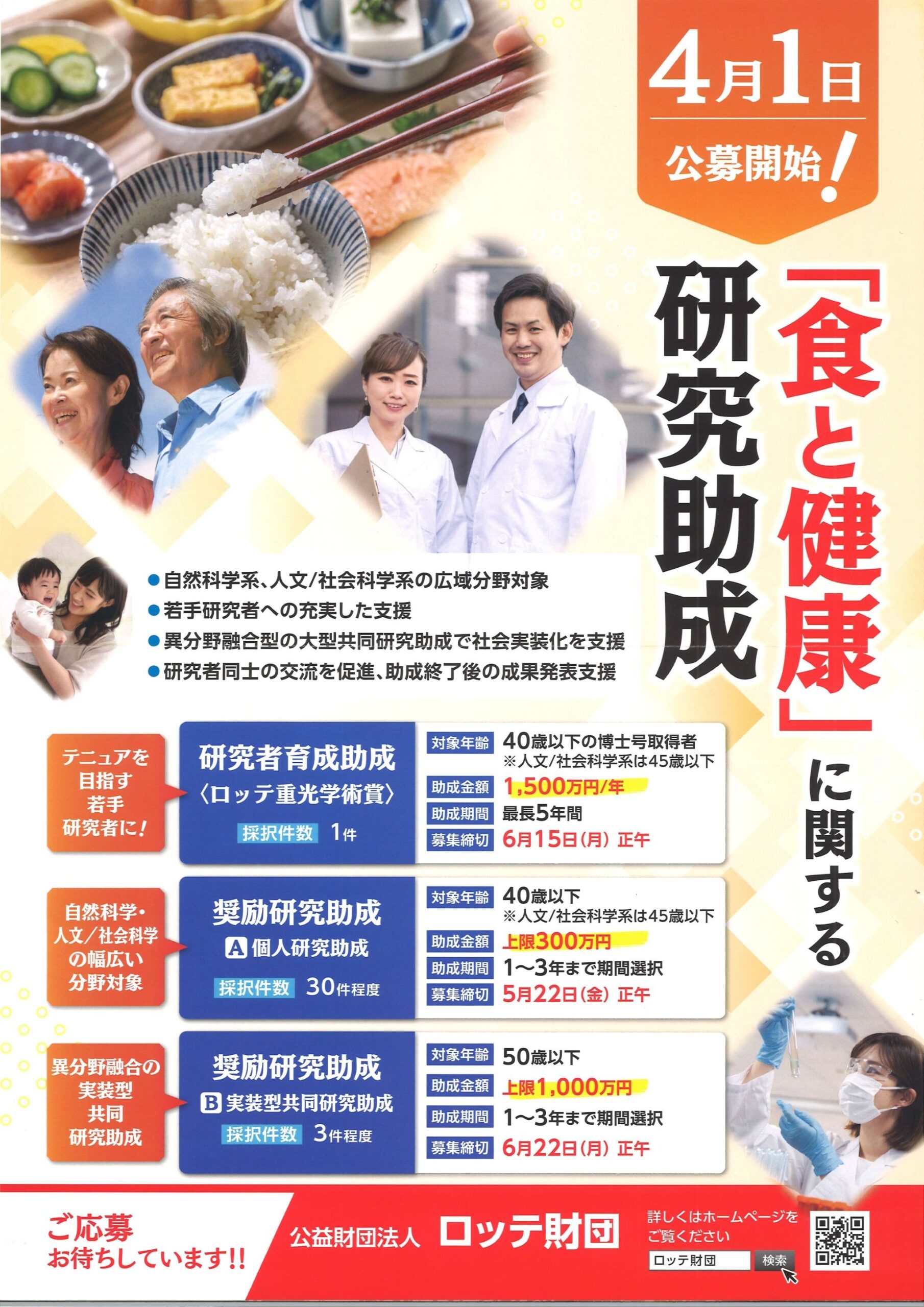ロッテ財団 第14回(2027年度)研究助成公募ご案内